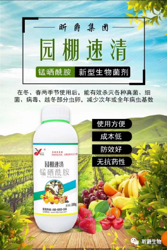 水溶肥厂家昕爵集团生产的清园剂园棚速清,是一种新型生物菌剂,具有强烈的消毒灭菌作用,是各种果园、大棚蔬菜、茶园、园林绿化病害防治的理想清园产品。使用方便,成本低、防效好,无抗药性等特点。在冬、春两季节使用后,能有效杀灭各种真菌、细菌、病毒、越冬部分虫卵,减少次年或全年病虫基数,防效较常用使用石硫合剂、松碱合剂或机油乳剂显著,而且还能提高树体抗病性,喷洒本剂要周到均匀,使树体表面形成一定保护膜,增强树体对冻害、霜害和病菌侵染的抗性,保护果树、茶叶等作物安全越冬。