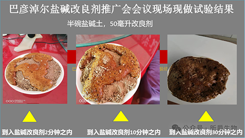 在介绍水溶肥厂家昕爵生产的土壤改良剂盐碱改良剂前,我们先来看一个案例:这是巴彦淖尔当地一个地方的土壤情况,地表白花花的像下了一场雪。请看下面用盐碱土在会场当场试验。
