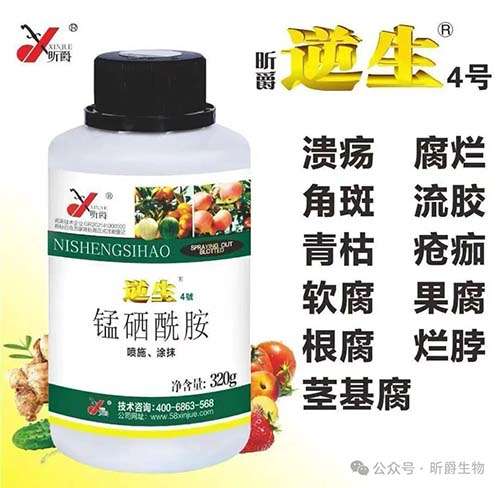 水溶肥厂家昕爵生产的逆生4号采用四元复配、碱性强氧化、高封闭强强内吸、渗透性强快速修复伤口、30秒焚烧病菌、两天定疤、三天恢复。对低等真菌、细菌、病毒效果突出。有效防治作物出水流脓、腐烂溃疡、穿孔破碎、发霉长毛。有效防治4烂:根烂、茎烂、花烂、果烂。有效防治4流脓流胶,茎流脓流胶、果流胶流脓、瓜流胶流脓、溃疡出水流脓,喷施后1天见效、两天定疤、三天伤口愈合、4天恢复生机,这就是它叫“逆生4号”的由来。