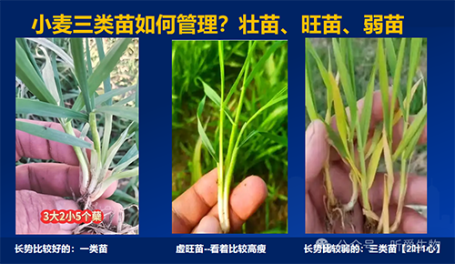 雨水过后土壤墒情充足,肥水管理切忌 “一刀切”,核心是弱苗早促、壮苗稳长、旺苗控旺,重点关注去年晚播形成的 “一根针”“土里捂” 弱苗,针对性补充肥水,推动苗情转化。